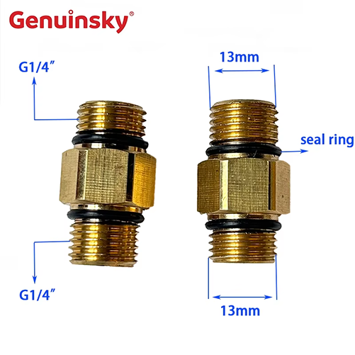 Puting tembaga dengan kedua-dua benang lelaki G1/4 tergolong dalam penyambung sistem cecair tekanan tinggi, kedua-dua belah pihak adalah benang lelaki G1/4 ", dengan diameter 13mm, dan meterai RI di kedua-dua belah Ng.