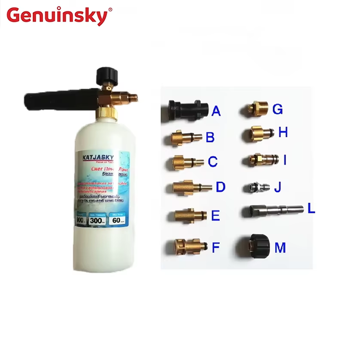 Genuinsky Brand Copper Car Washer Foam Lance, yang boleh disesuaikan dengan Karcher Nilfisk Lavor Bosch Bd Washer Foam Generator Sn Ow Bubble Lance Foamer. Ningbo Genuinsky Company adalah sebuah syarikat yang mengkhususkan diri dalam pengeluaran aksesori pembersihan. Syarikat itu mengintegrasikan pembuatan, pembangunan dan jualan, dengan kualiti yang sangat baik, harga keutamaan dan perkhidmatan selepas jualan yang sangat baik, supaya pengguna dapat membeli dengan lebih banyak ketenangan fikiran.