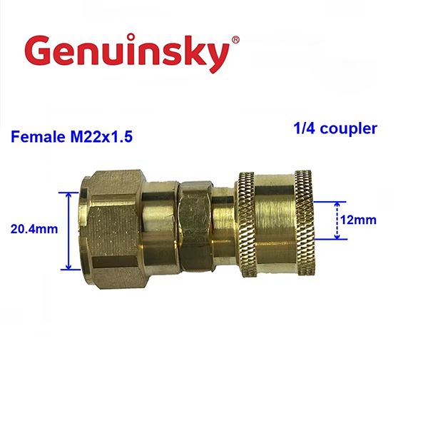 Jenama Genuinsky Pasangan 1/4 "radalah pilihan yang boleh dipercayai untuk operasi pembersihan. Satu hujung produk ialah benang wanita M22 × 1.5, dengan diameter 20.4mm, dengan penyambung cepat tembaga dua kali, 20 SFA, 1/4 inci, yang merupakan penyambung kecil yang digunakan untuk menyambungkan saluran paip, kabel atau antara muka peranti. Bahan produk adalah tembaga. Kelebihan tembaga itu sendiri adalah rintangan kakisan, dan ia juga mempunyai kekuatan dan kekerasan tertentu. Oleh itu, ia boleh menyesuaikan diri dengan senario penggunaan kompleks, memanjangkan masa penggunaan produk yang berkaitan, dan mengurangkan pelaburan kos. Bercakap secara ringkas mengenai kemahiran penggunaan 1/4 "pengganding sebelum pemasangan: pastikan bahawa antara muka bersih, kemudian sambungkannya secara manual, putar ujung berulir M22 × 1.5, dan pasangkan penyambung 1/4 inci di sisi lain terus ke dalam penyesuaian memproses dan mencapai pengedap yang sangat baik.