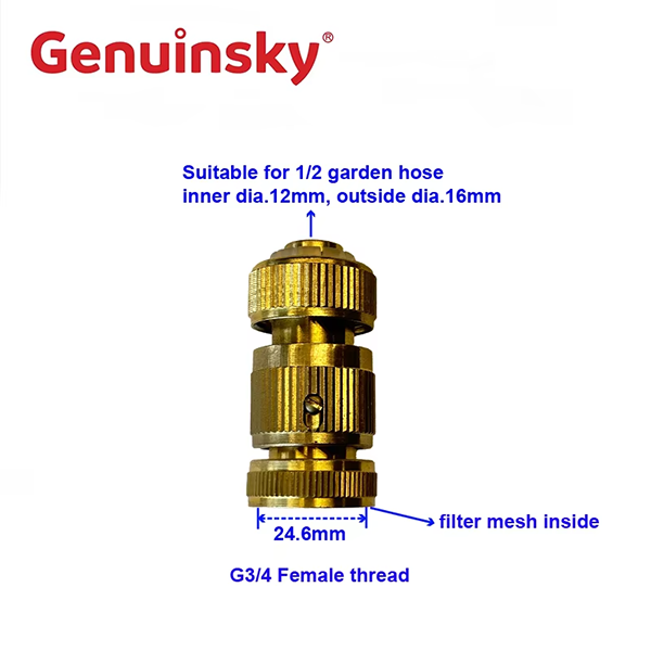 Tekanan Washer Inlet Connector adalah bahagian penyambung akhir air masuk air basuh tekanan tinggi yang banyak digunakan dalam kehidupan seharian. Ia sesuai untuk 1/2 hos taman, dia.12mm dalam, di luar Dia.1 6mm, ujung yang lain adalah benang wanita G3/4, dengan diameter 24.6mm, dan terdapat mesh penapis di dalamnya.