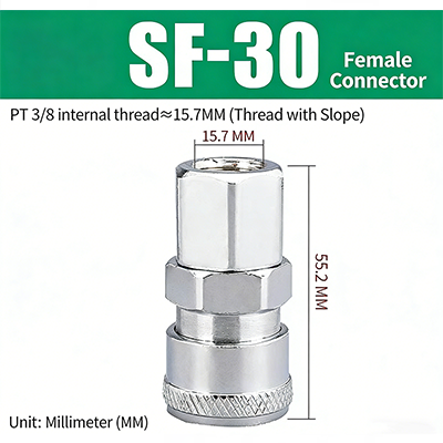 Gandingan Pantas Jenis C PF–SF Genuinsky dengan Benang PT JIS menampilkan struktur sambungan cepat jenis C, membolehkan penyambung lelaki dan perempuan dipasangkan secara bebas. Permukaan saduran elektrik dan teras injap tembaga meningkatkan ketahanan produk. Sebagai pembekal aksesori alat pneumatik profesional China, Genuinsky menghasilkan produknya dengan mematuhi sepenuhnya piawaian. Siri ini menawarkan rangkaian lengkap spesifikasi, membolehkan padanan tepat dengan saluran paip pneumatik yang berbeza.