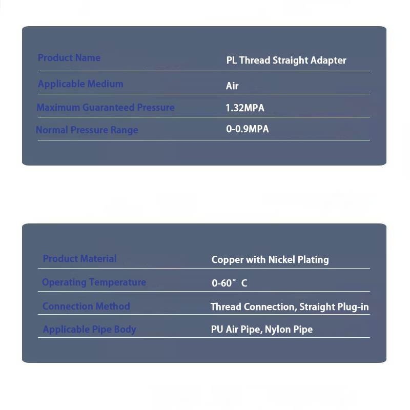 PL Thread Lurus Penyesuai dan tiub juga boleh berputar 360 ° secara bebas selepas pemasangan, yang bermaksud bahawa ia boleh memecahkan batasan penetapan sudut sendi tradisional. Ia boleh menyesuaikan diri dengan trend saluran paip kompleks, dan senario produk yang berkenaan lebih luas. Pada masa yang sama, produk mempunyai toleransi untuk menyesuaikan diri dengan senario yang berbeza. Sebagai contoh, ia juga boleh mengekalkan prestasi yang stabil dalam barisan pengeluaran suhu tinggi, kerana pelbagai toleransi produk itu sendiri berada dalam julat suhu 0-60 ° C. Di samping itu, tekanan terjamin maksimum boleh mencapai 1.32MPa, dan julat tekanan kerja biasa adalah 0-0.9MPa, yang dapat meliputi sepenuhnya operasi peralatan yang stabil yang memerlukan keadaan kerja tekanan tinggi seperti alat pneumatik dan silinder automatik.