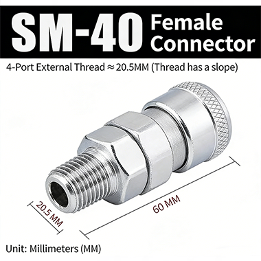 3. SM-40. Benang luar 1/2 inci ialah benang kon dengan diameter benang 20.5 mm dan panjang keseluruhan 60 mm.