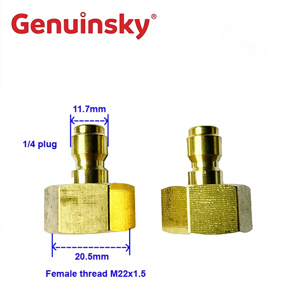 Produk ini adalah palam cepat 1/4 inci Thread Female M22 Connector.ningbo Genuinsky Company adalah sebuah syarikat yang mengkhususkan diri dalam pengeluaran aksesori pembersihan. Syarikat itu mengintegrasikan pembuatan, pembangunan dan jualan, dengan kualiti dan harga istimewa yang sangat baik. Sila yakinkan untuk membeli.