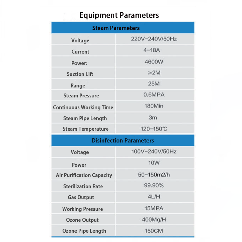 Steam pembersihan suhu tinggi dan pembasmian kuman semua mesin adalah alat yang berkuasa untuk pembersihan dan pembasmian kuman. Ia mengintegrasikan pelbagai fungsi dan digunakan secara meluas dalam pembersihan rumah dan pembasmian kuman, pembersihan kereta, pembersihan katering dan hotel dan senario lain yang berkaitan.